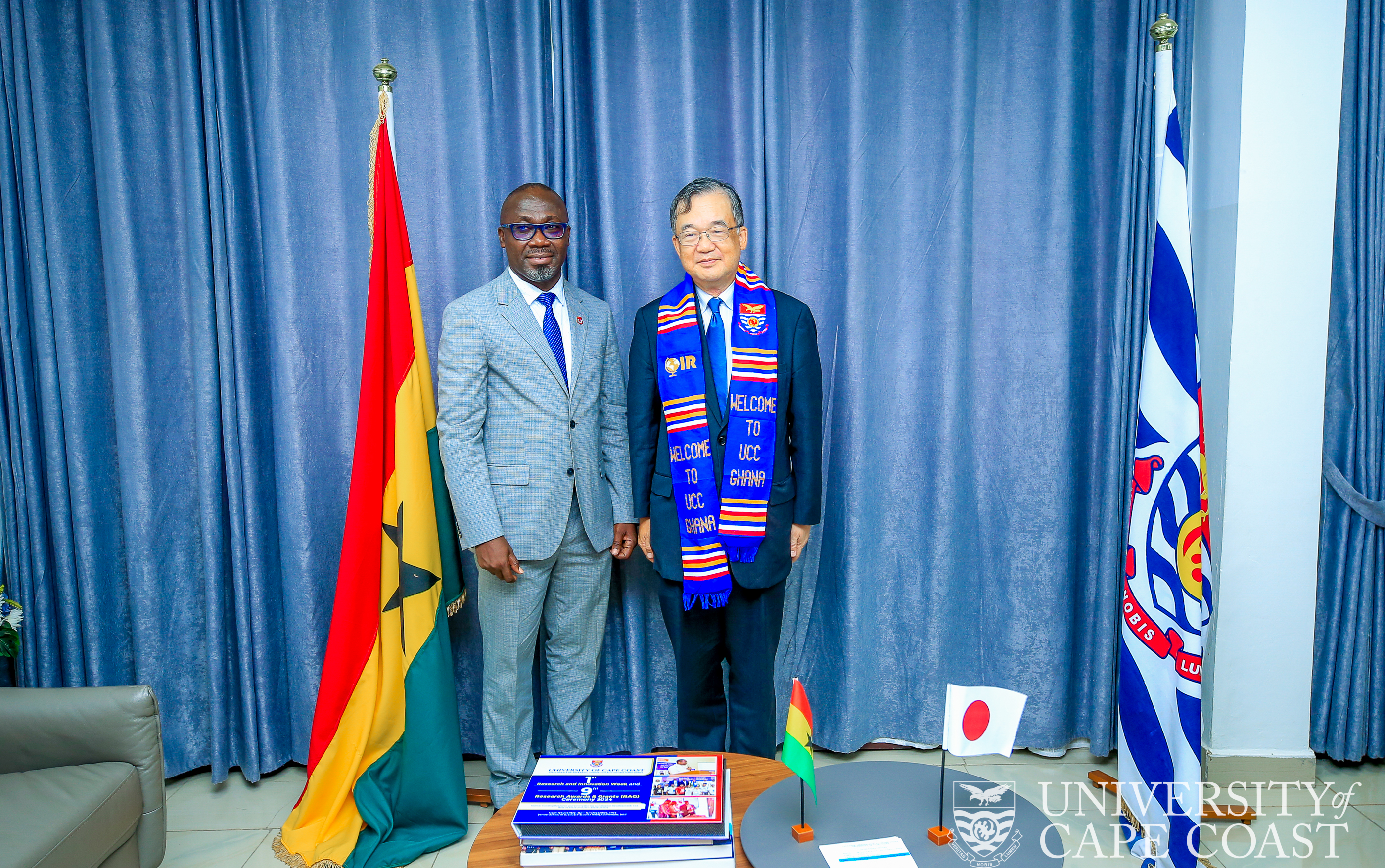 The Japanese Ambassador to Ghana, Hiroshi Yoshimoto, has paid a courtesy call on the Acting Vice-Chancellor of the University of Cape Coast (UCC), Prof. Denis Aheto, in his office.